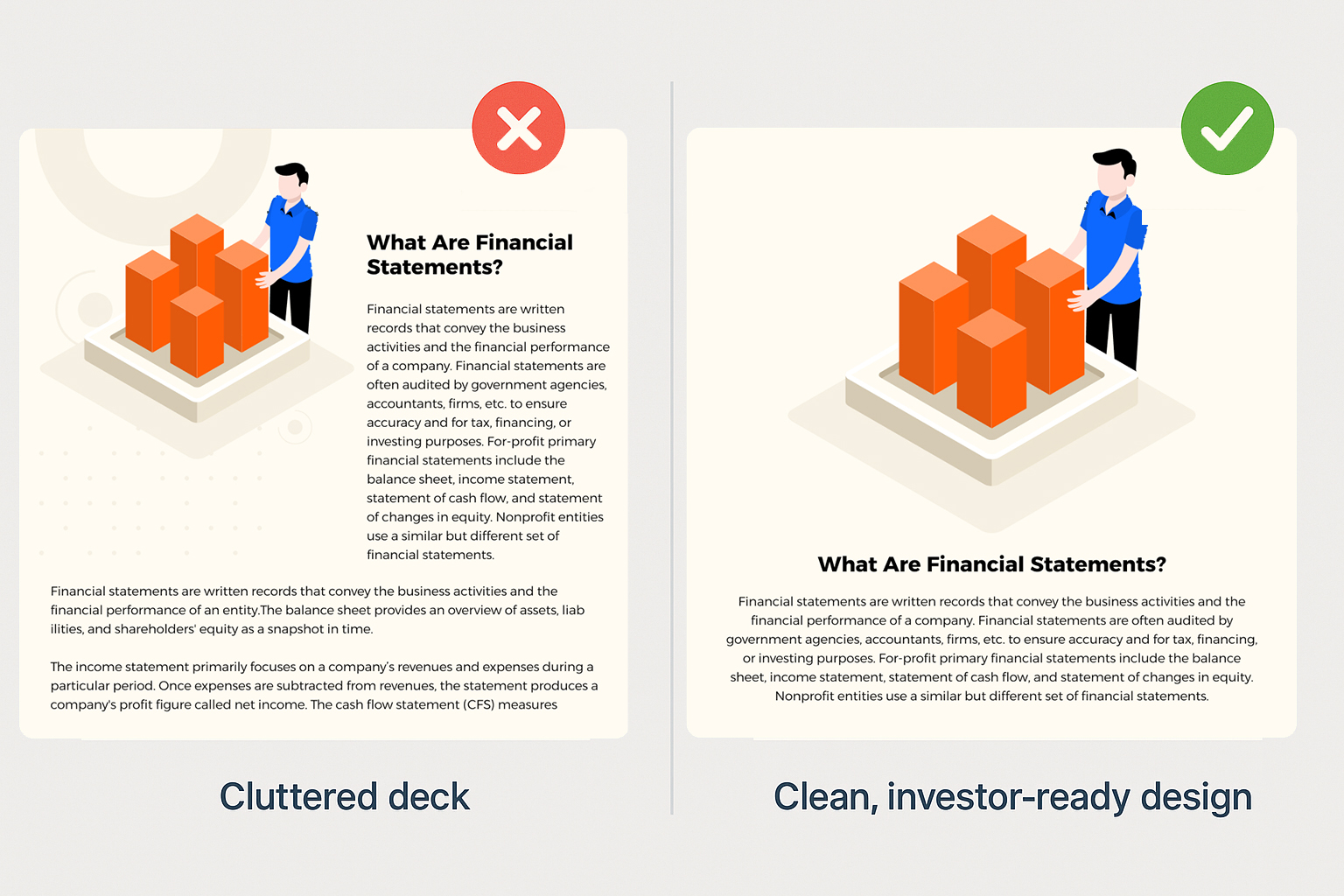 For your friend's birthday invite? Maybe. For investors? Nah. We turn Canva chaos into curated confidence.